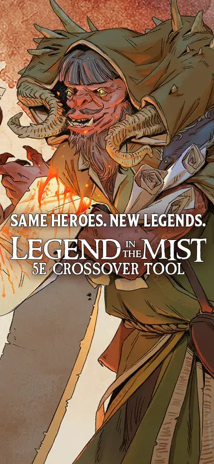 We look forward to seeing what sorts of tales you’ll bring to life with the 5e Crossover Tool. Keep an eye on this page for updates and share your Legend In The Mist adventures on our Discord server!