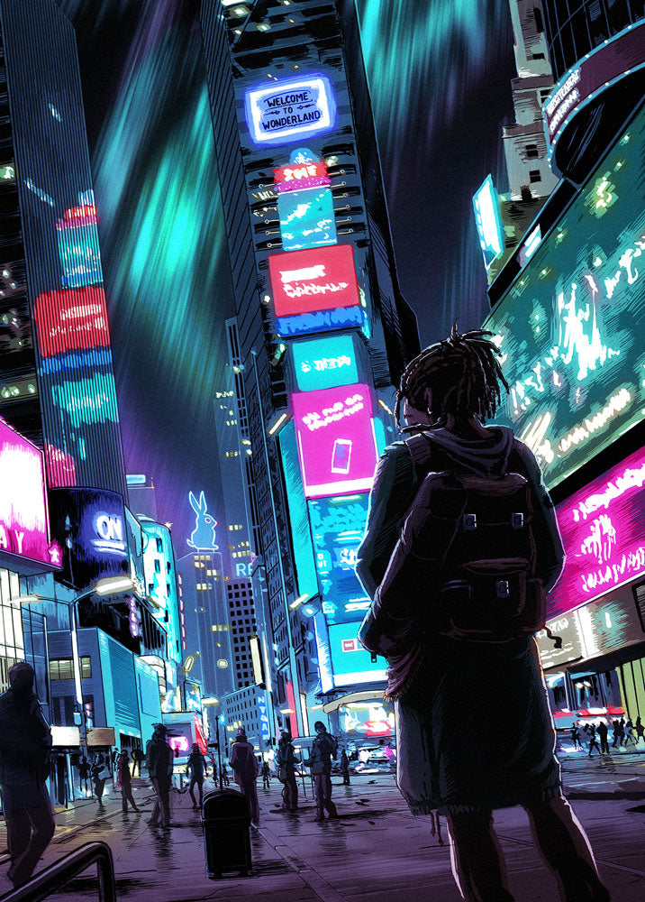 Alice is new in town. Few know her; no one knows where she’s from. She seems to be a drifter just wandering downtown in a windbreaker and wool hat. Buy her a cheap burger and she is happy to talk without taking a breath. She’ll tell you that everything here looks absolutely mad to her. Some of the things she says make sense, because downtown is pretty crazy after all. Just make sure you don’t follow her nor take any recreational substances she offers you... unless you’re just dying to know what’s down that rabbit-hole...