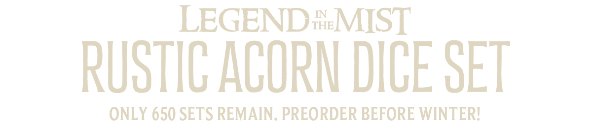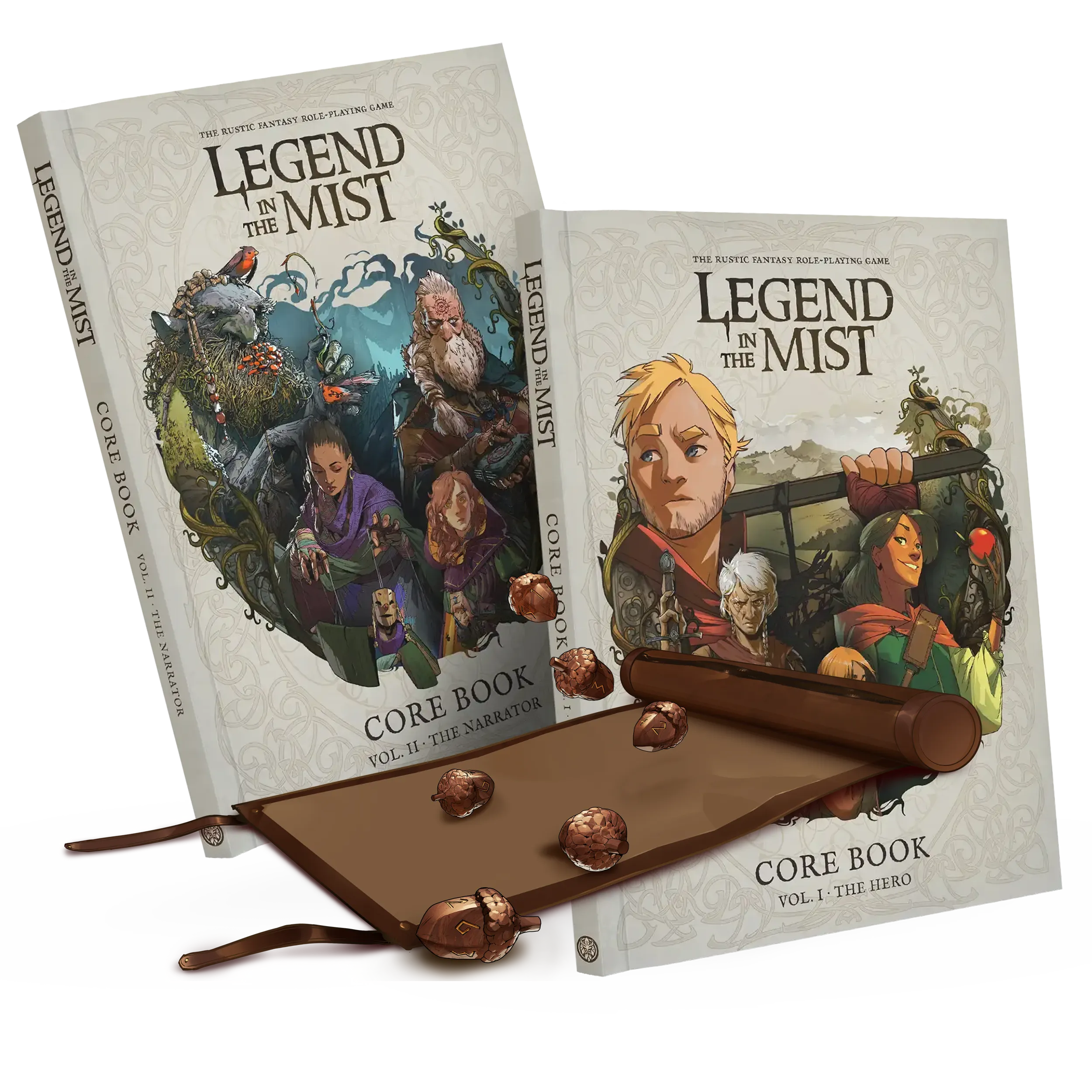 Save $10 when you buy our spinable acorn dice, carrying pouch, and the Legend in the Mist core book bundle. Plus, you'll get the digital edition of the game instantly so you can start playing right away.